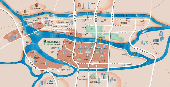 交通方面,项目与海珠一桥之隔,自驾经洛溪大桥、新光快速等路网,20分钟可达珠江新城,25分钟直达广州南站;周边公交线路密集,临近地铁2号线洛溪站、南浦站,有公交及楼巴接驳,出行便捷高效。
