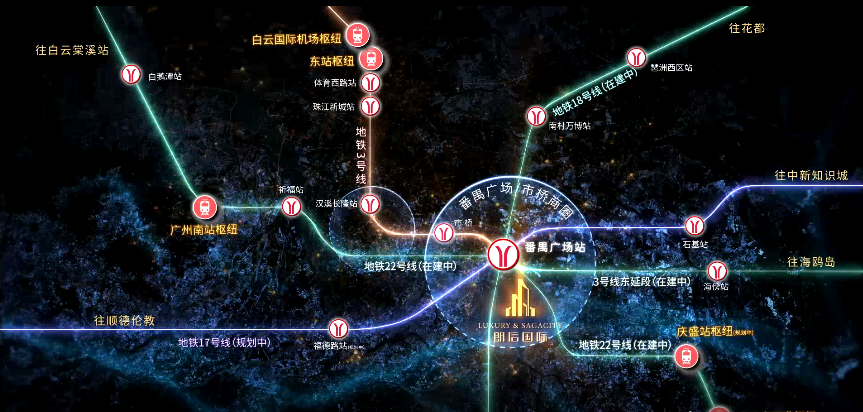 4. 广州*批高速地铁17、18、22号线交汇,15*覆盖30公里出行圈